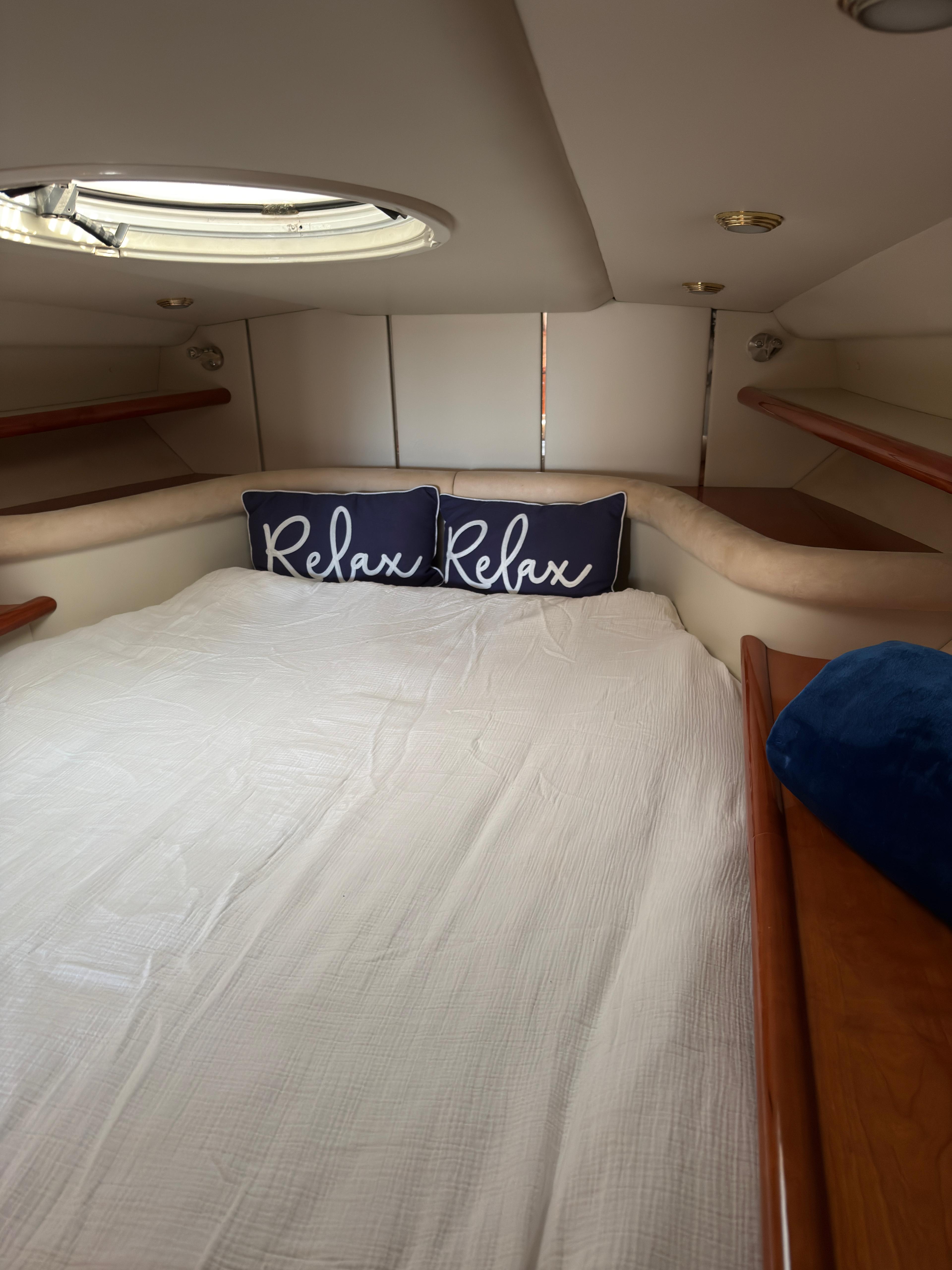 uitrusting boot: 1 toilet, Douche, 300L water tank, u-vormige Louchebank, Boegschroef, acculader, dieptemeter, elektrisch anker, kookmogelijkheden, boordcomputer, spoelbakken, trimvlakken, ..... een volledige full option boot.